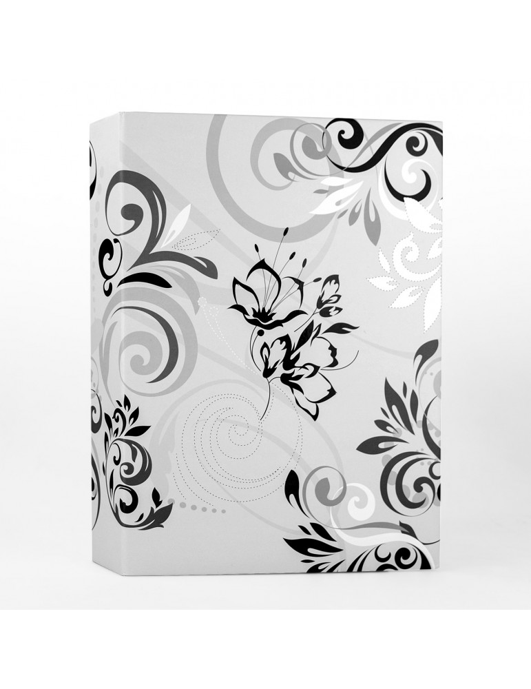 Album Umbria White, album fotografico a tasche, con copertina in carta stampata, a tema floreale, album da raccolta ad inserimento per 200 foto, disponibile in vari formati, con spazio per scrivere commenti o frasi divertenti, per custodire i tuoi ricordi e le tue foto preferite.CARATTERISTICHECATEGORIAAlbum slip-in, copertina in cartaMISURA FOTO (cm)10x15QUANTIT FOTO200COLOREGrigio chiaro, stampa a tema florealeMISURA ESTERNA (cm)19,5 x 25,2 x 5,2PESO con scatola (gr)630PARTICOLARITCopertina con doppio effetto lucido opaco. Spazio memo laterale per scrivere e Cd bagPACKAGINGCellophan