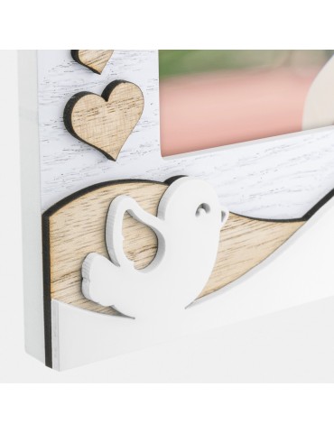 Cornice Battesimo in legno, colore bianco e naturale, con scritta IL MIO BATTESIMO a rilievo traforato e decoro a forma di uccellino in 3D, da tavolo, ideale per celebrare la nascita e il battesimo, adatta ad un bambino/a, a tema baby, idea regalo originale.CARATTERISTICHECATEGORIACornice in legnoMISURA FOTO (cm)13x18COLOREBianco/ Legno naturaleSPESSORE CORNICE (cm)1,5MISURA ESTERNA (cm)19x14MISURA ESTERNA (cm) CON SCATOLA21,5x26x3PESO con scatola (gr)225ORIENTAMENTO IMMAGINEOrizzontaleUTILIZZO (DA TAVOLO/PARETE)Da TavoloRETROMdfPARTICOLARITprofilo classico con decoro a rilievoPACKAGINGScatola
