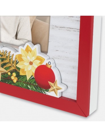 Cornice Braies Horizontal in legno, colore bianco, rosso e legno naturale, con decori natalizi in 3D, da tavolo e da parete, disponibile in vari formati,idea regalo originale, decorazione natalizia, regalo personalizzato.CARATTERISTICHECATEGORIACornice in legnoMISURA FOTO (cm)10x15COLOREbianco/rossoSPESSORE CORNICE (cm)1,2MISURA ESTERNA (cm)22x17MISURA ESTERNA (cm) CON SCATOLA18x23x2PESO con scatola (gr)335ORIENTAMENTO IMMAGINEOrizzontaleUTILIZZO (DA TAVOLO/PARETE)TavoloRETROMdfPARTICOLARITCornice in legno con decoro in rilievo a tema natalizioPACKAGINGScatola