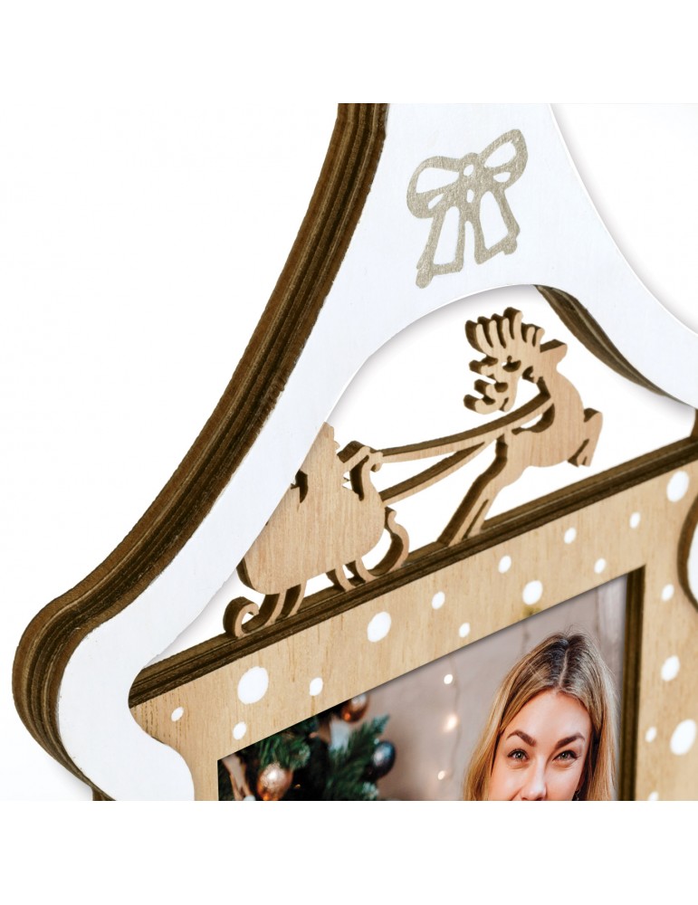 Cornice Julia in legno, a forma di albero, colore naturale e bianco, con decoro traforato e a rilievo, a tema invernale e natalizio, da tavolo, idea regalo originale, decorazione natalizia, regalo personalizzato.CARATTERISTICHECATEGORIADecorazione nataliziaMISURA FOTO (cm)10x15COLOREBianco/Legno naturaleSPESSORE CORNICE (cm)5MISURA ESTERNA (cm)29x30MISURA ESTERNA (cm) CON SCATOLA30x31x6PESO con scatola (gr)335ORIENTAMENTO IMMAGINEVerticaleUTILIZZO (DA TAVOLO/PARETE)Da tavoloRETROMdfPARTICOLARITCornice sagomata a forma di albero in 3DPACKAGINGScatola