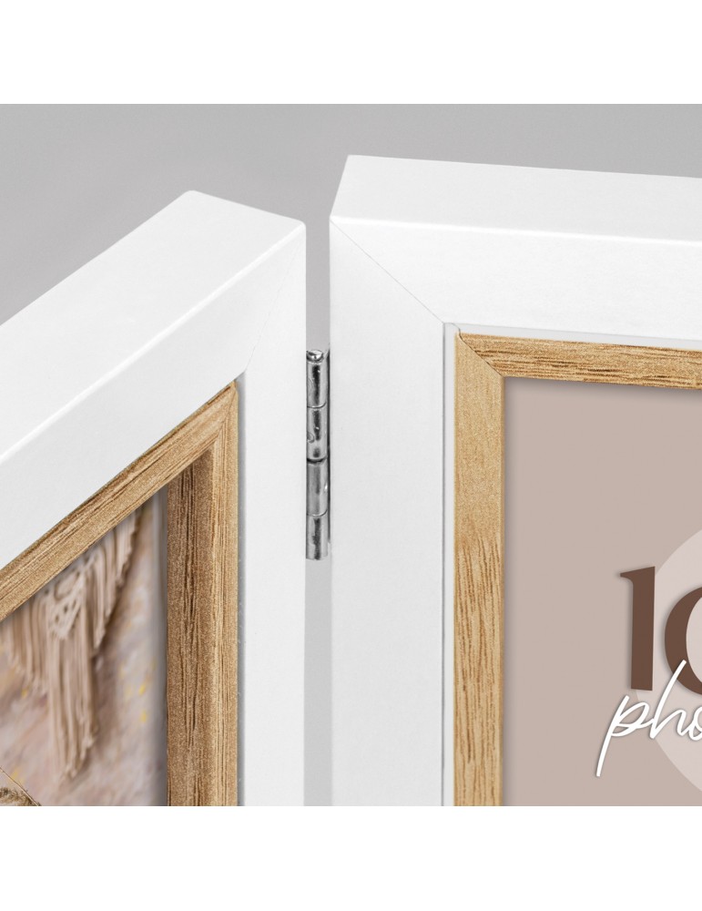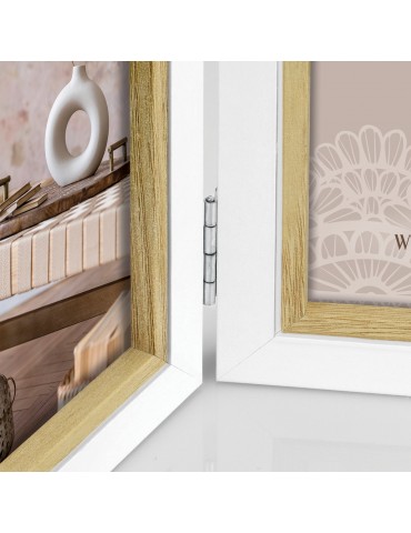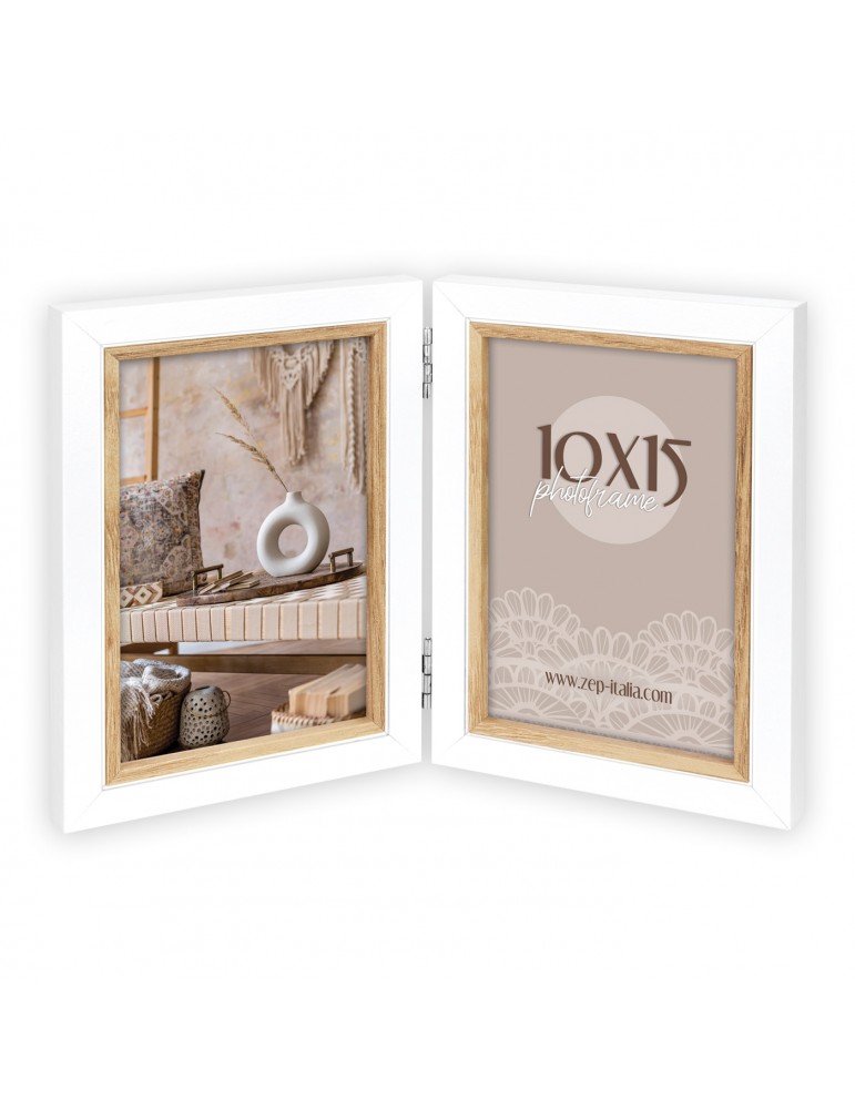 Cornice Ayas 2Q in legno, colore bianco e marrone, multifoto da tavolo, per 2 foto, profilo classico, adatta per casa e ufficio, idea regalo originale.CARATTERISTICHECATEGORIACornice in legnoMISURA FOTO (cm)2x13x18COLOREBianco e marroneSPESSORE CORNICE (cm)1,5MISURA ESTERNA (cm)31x20,5LARGHEZZA ASTA (cm)2MISURA ESTERNA (cm) CON SCATOLA16,5x21,5x3,5PESO con scatola (gr)530ORIENTAMENTO IMMAGINEVerticale / orizzontaleUTILIZZO (DA TAVOLO/PARETE)Da tavoloRETROMdfPARTICOLARITProfilo classicoPACKAGINGScatola