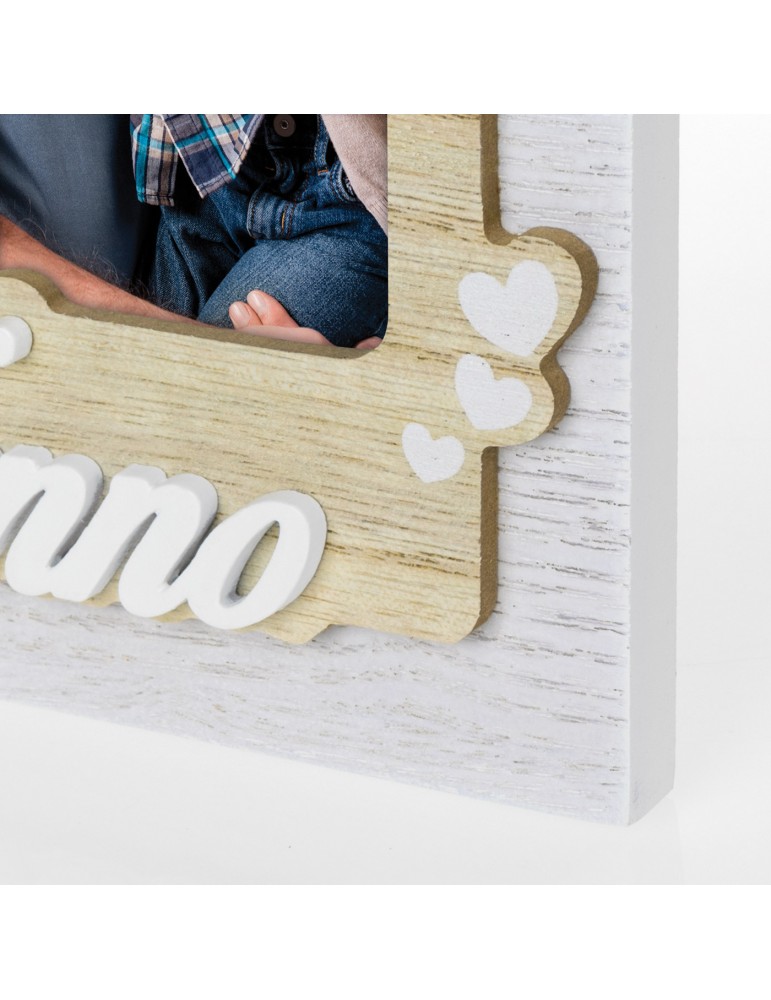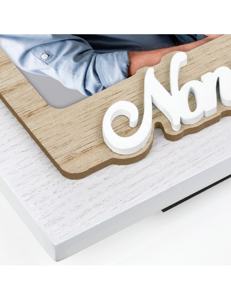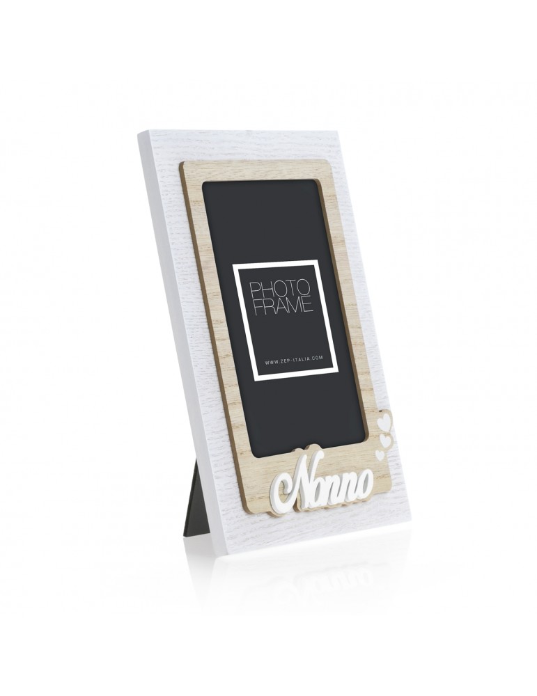 Cornice Nevio IT in legno, colore bianco e marrone, decoro traforato a rilievo, con scritta NONNO, da tavolo, adatta come regalo alla festa dei nonni, ideale per celebrare anniversari o compleanni, adatta per casa e ufficio.CARATTERISTICHECATEGORIACornice in legnoMISURA FOTO (cm)10x15COLOREBianco/legno naturaleSPESSORE CORNICE (cm)1,2MISURA ESTERNA (cm)21x14MISURA ESTERNA (cm) CON SCATOLA22x15x2,5PESO con scatola (gr)255ORIENTAMENTO IMMAGINEVerticaleUTILIZZO (DA TAVOLO/PARETE)Da tavoloRETROMdfPARTICOLARITParticolare in rilievo scritta NONNOPACKAGINGScatola