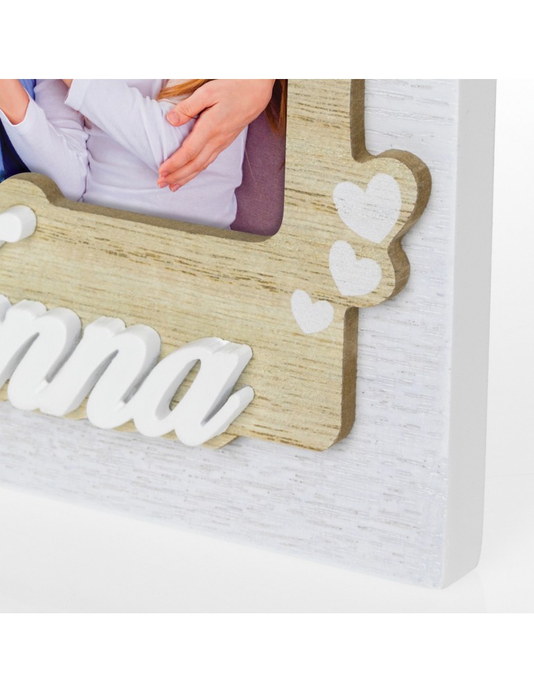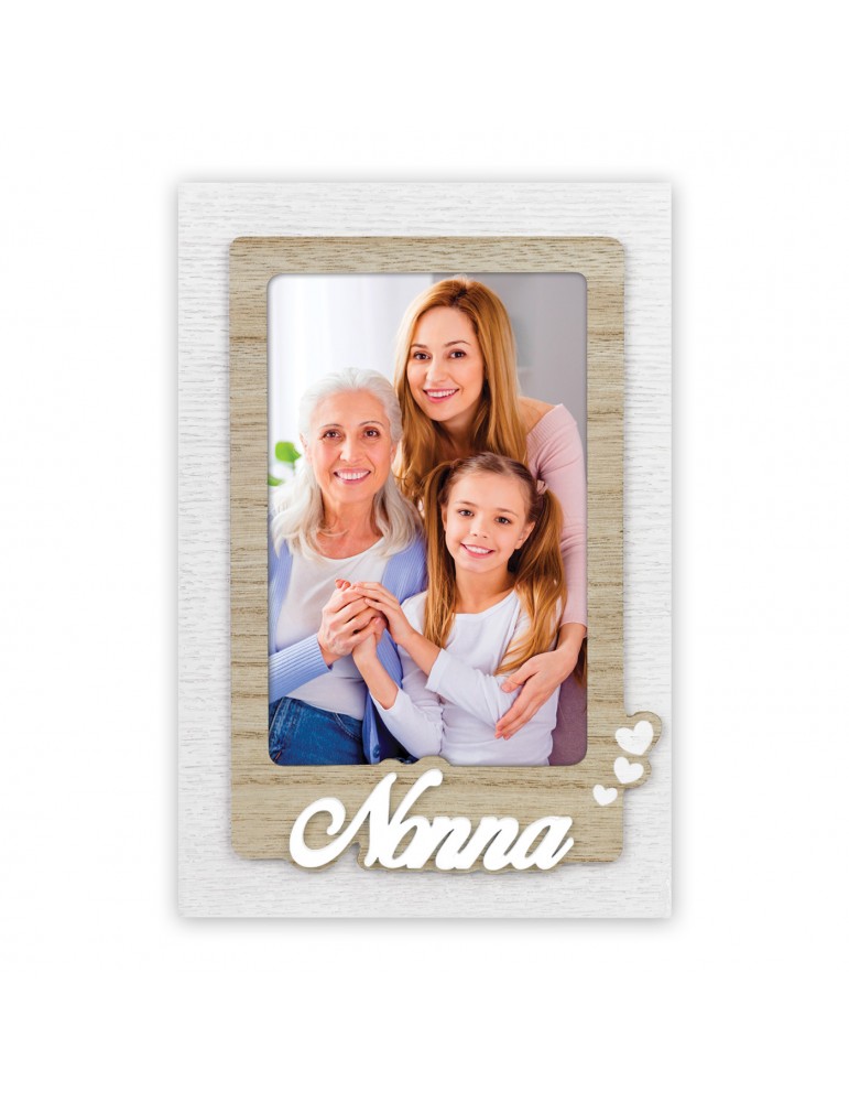DESCRIZIONECornice Agnese IT in legno, colore bianco e marrone, decoro traforato a rilievo, con scritta NONNA, da tavolo, adatta come regalo alla festa dei nonni, ideale per celebrare anniversari o compleanni, adatta per casa e ufficio.CARATTERISTICHECATEGORIACornice in legnoMISURA FOTO (cm)10x15COLOREBianco/legno naturaleSPESSORE CORNICE (cm)1,2MISURA ESTERNA (cm)21x14MISURA ESTERNA (cm) CON SCATOLA22x15x2,5PESO con scatola (gr)255ORIENTAMENTO IMMAGINEVerticaleUTILIZZO (DA TAVOLO/PARETE)Da tavoloRETROMdfPARTICOLARITParticolare in rilievo scritta NONNA