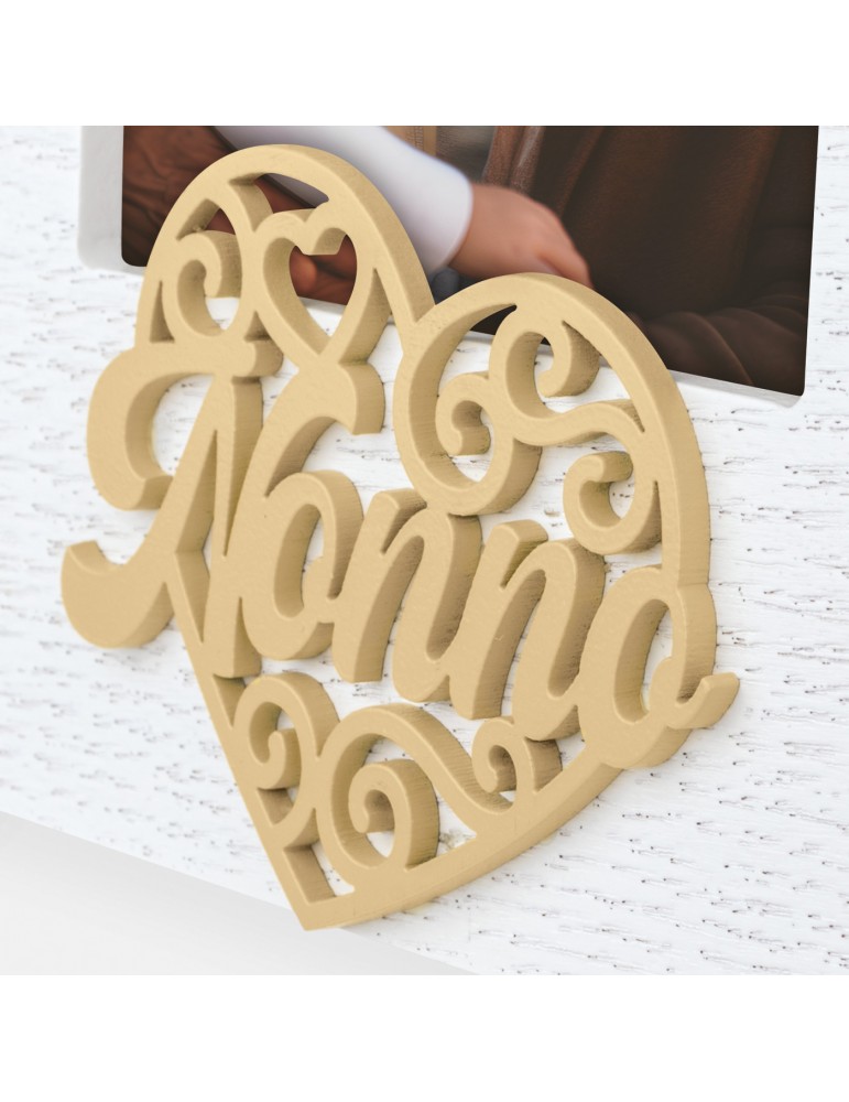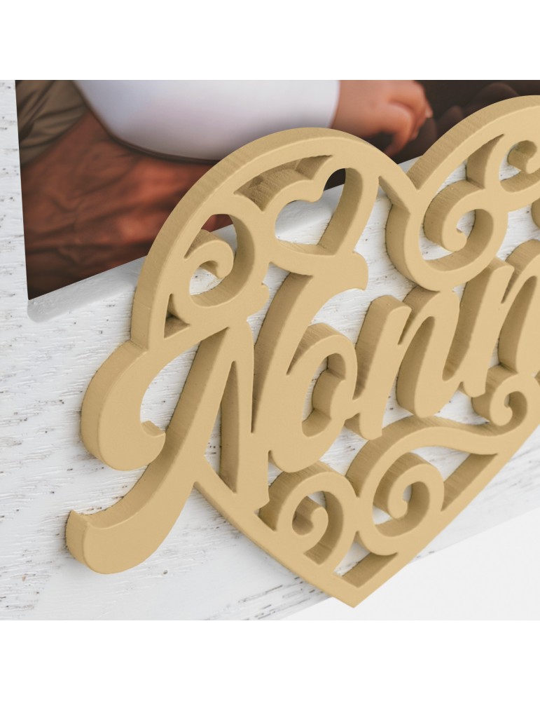 Cornice Gianni It in legno, colore bianco, con scritta NONNO a rilievo e decoro a forma di cuore traforato, da tavolo, adatta alla festa dei nonni, ideale per celebrare anniversari o compleanni, adatta per casa e ufficio, idea regalo originale.CARATTERISTICHECATEGORIACornice in legnoMISURA FOTO (cm)10x15COLOREBianco/ Legno naturaleSPESSORE CORNICE (cm)0,9MISURA ESTERNA (cm)17x22MISURA ESTERNA (cm) CON SCATOLA18,5x23x2,2PESO con scatola (gr)315ORIENTAMENTO IMMAGINEVerticaleUTILIZZO (DA TAVOLO/PARETE)Da TavoloRETROMdfPARTICOLARITprofilo classico con decoro a rilievoPACKAGINGScatola