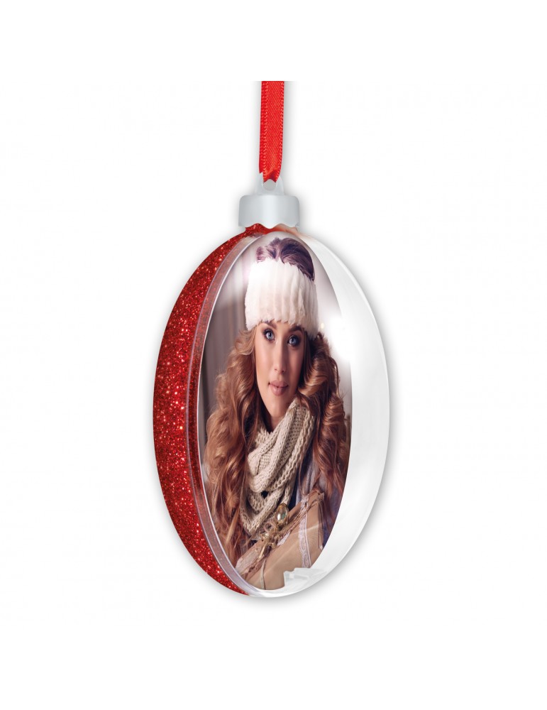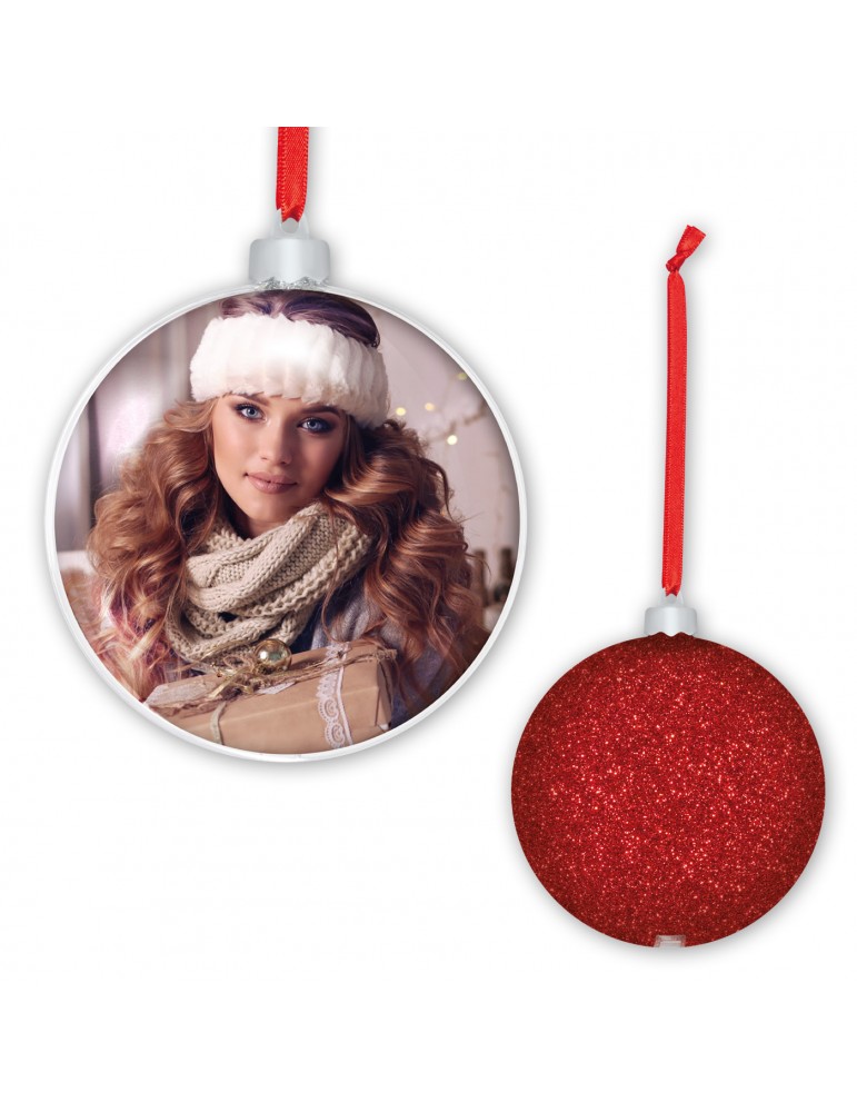 Photo Christmas Red, palla di natale effetto piatto con foto, in plastica meta di colore rosso con decoro a rilievo e meta trasparente, nuovo sistema glitter stop per evitare che i brillantini si disperdano, personalizzabile con foto, da appendere, idea regalo originale, addobbo o decorazione natalizia, regalo personalizzato.CARATTERISTICHECATEGORIAPalla di Natale con fotoMISURA FOTO (cm)8,5x8,5COLORETrasparente/RossoMISURA ESTERNA (cm) 7,5 h8,7LARGHEZZA ASTA (cm)5x5,2x9MISURA ESTERNA (cm) CON SCATOLA65ORIENTAMENTO IMMAGINECerchioUTILIZZO (DA TAVOLO/PARETE)Da appenderePARTICOLARITPalla di natale con nuovo sistema glietter stop nel retroPACKAGINGScatola